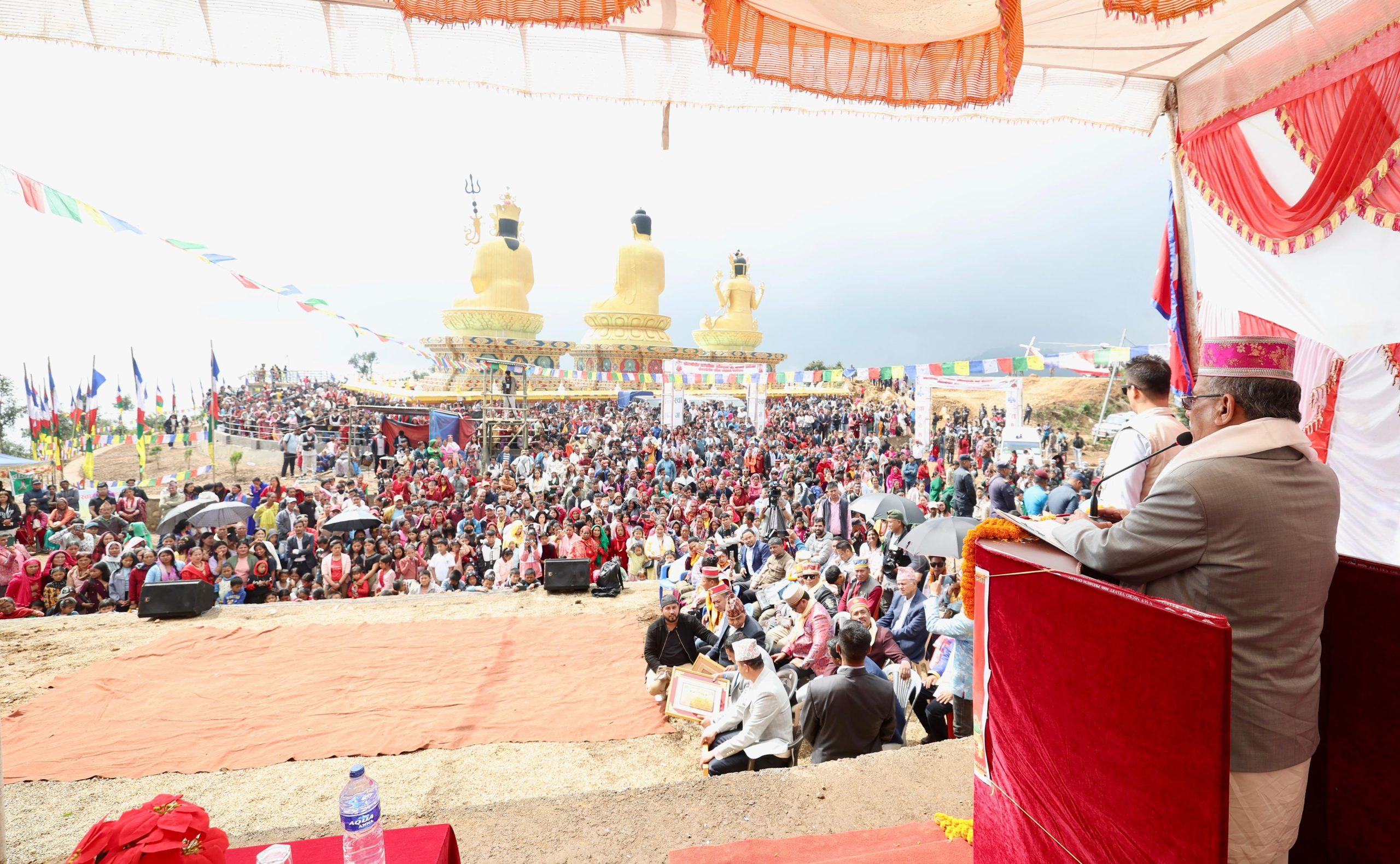 कोन्ज्योसोम प्रतिमा निर्माणमा सङ्घ, प्रदेश र स्थानीय तीनै तहको भूमिका र योगदान रहेको उल्लेख गर्दै प्रधानमन्त्री प्रचण्डले तीनै तहका सरकारहरूको संयुक्त लागत साझेदारीमा निर्माण गरिएको त्रिमूर्तिले यस क्षेत्रको ऐतिहासिकताको समेत प्रतिनिधित्व गर्ने विश्वास व्यक्त गर्नुभयो ।