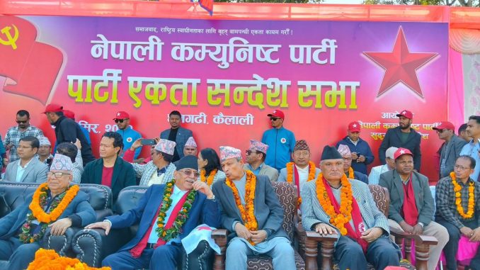संयोजक प्रचण्डले हालै गठन भएको नेपाली कम्युनिष्ट पार्टी १५ वटा कम्युनिस्ट घटकहरूको ऐतिहासिक एकताको परिणाम भएको उल्लेख गर्दै यसले देशभर नयाँ ऊर्जा पैदा गरेको उल्लेख गर्नुभयो। एमालेभित्रका देशभक्त तथा क्रान्तिकारी कार्यकर्तालाई पनि यस पार्टीमा एकताबद्ध हुन आग्रह गर्दै उहाँले भन्नुभयो,