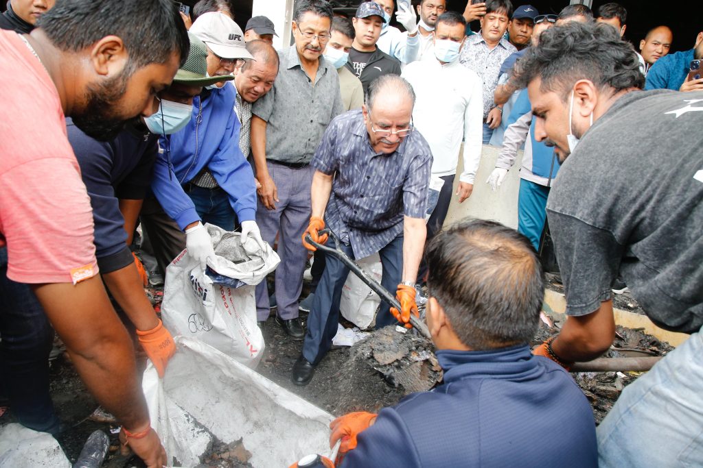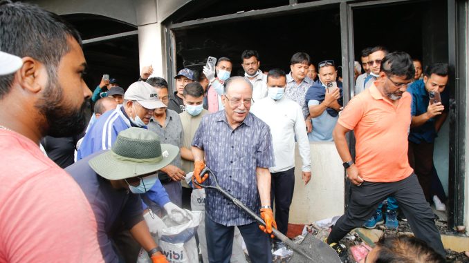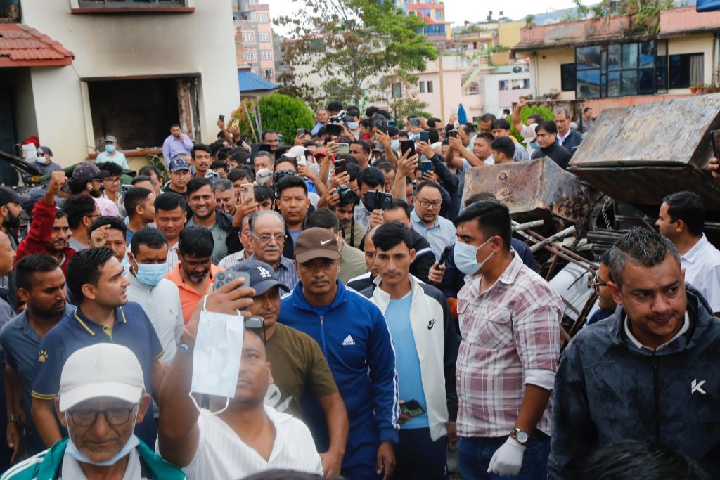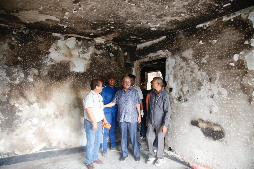 अध्यक्ष ‘प्रचण्ड’ द्वारा आगलागी र तोडफोड भएको पार्टी कार्यालयको अनुगमन