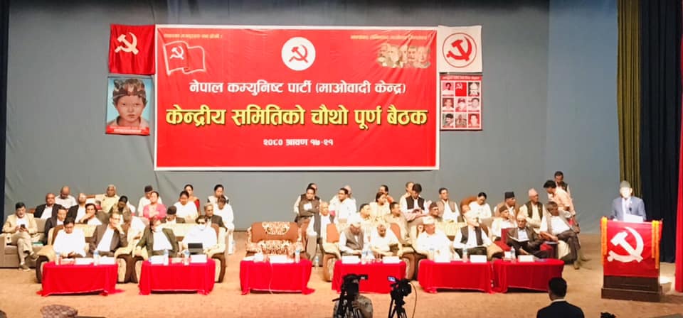 नेपाल कम्युनिस्ट पार्टी (माओवादी केन्द्र) को केन्द्रीय समितिको चौंथो पूर्ण बैठक सम्माननीय प्रधानमन्त्री तथा पार्टी अध्यक्ष कमरेड पुष्पकमल दाहाल ‘प्रचण्ड’को अध्यक्षतामा बुधबारदेखि प्रज्ञा भवन कमलादी, काठमाडौँमा जारी रहेको छ । केन्द्रीय समितिको बैठकसम्बन्धी संक्षिप्त जानकारी गराउने उद्देश्यले यो प्रेस नोट जारी गरिएको छ ः