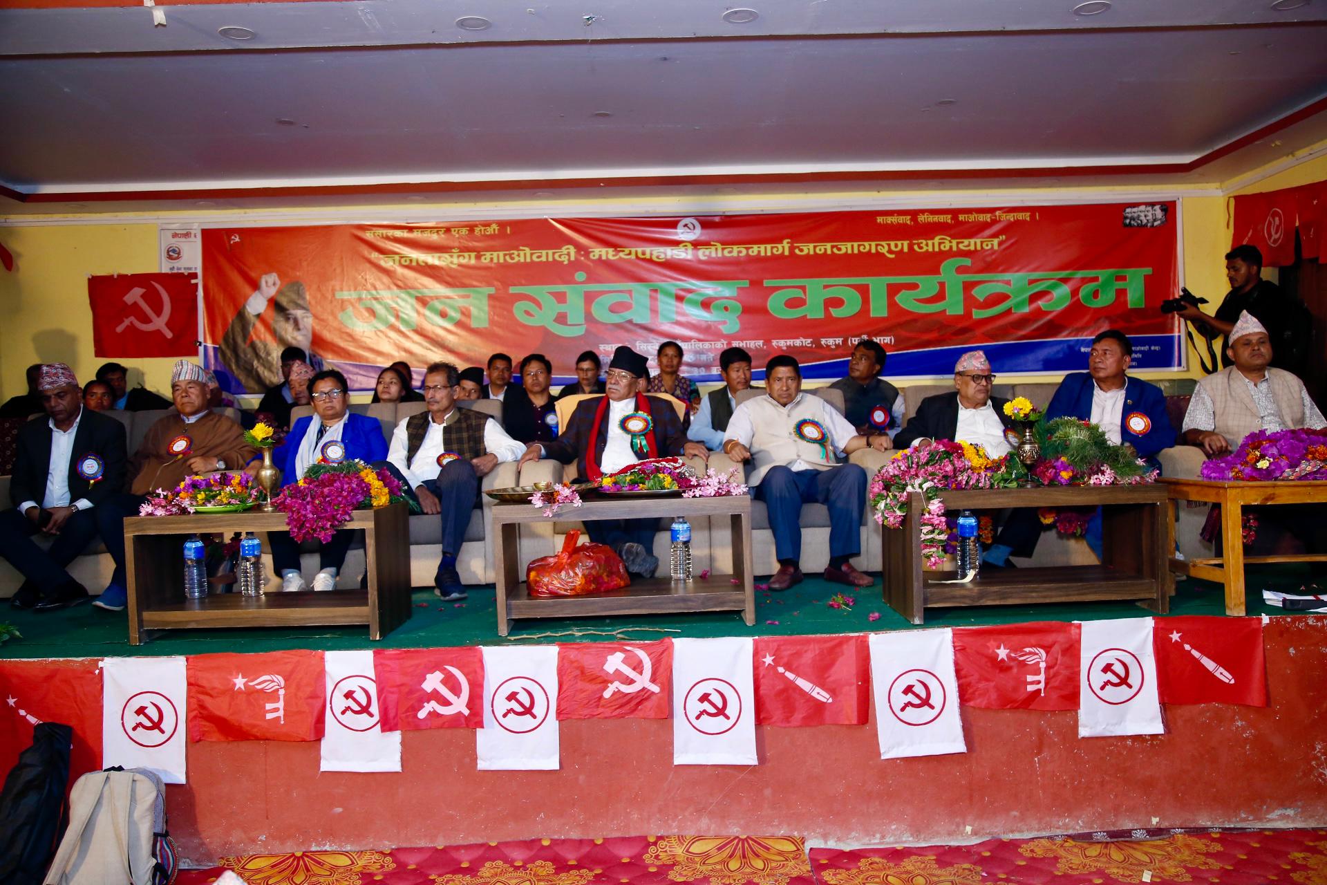 कार्यक्रममा सम्बोधन गर्दै अध्यक्ष प्रचण्डले जनयुद्धका उपलब्धि, राजनीतिक रूपान्तरणको वर्तमान अवस्था र जनताको सहभागितामूलक लोकतन्त्रको आवश्यकता बारे धारणा राख्नुभयो। उहाँले अभियानको उद्देश्य जनताको विश्वास र सहभागिता पुनः मजबुत बनाउने रहेको स्पष्ट पार्नुभयो।